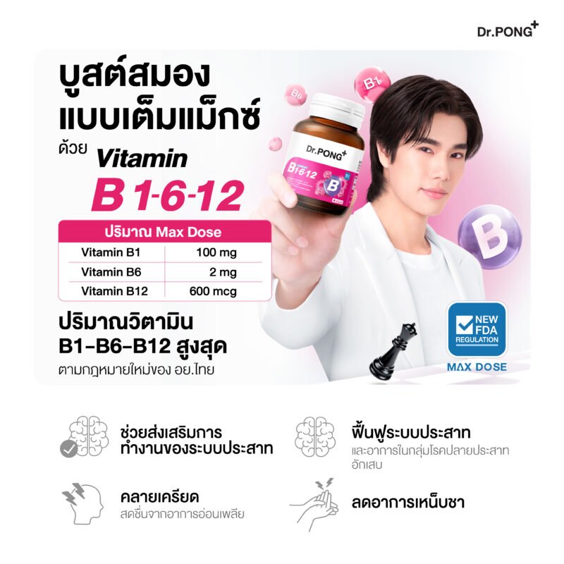 Dr.PONG B Complex 1-6-12 Vitamin B1 B6 B12 วิตามินบีรวม ดูแลระบบประสาทและสมอง อาการเหน็บชา บูสต์เอเนอจี้ ให้ร่างกายสดชื่น