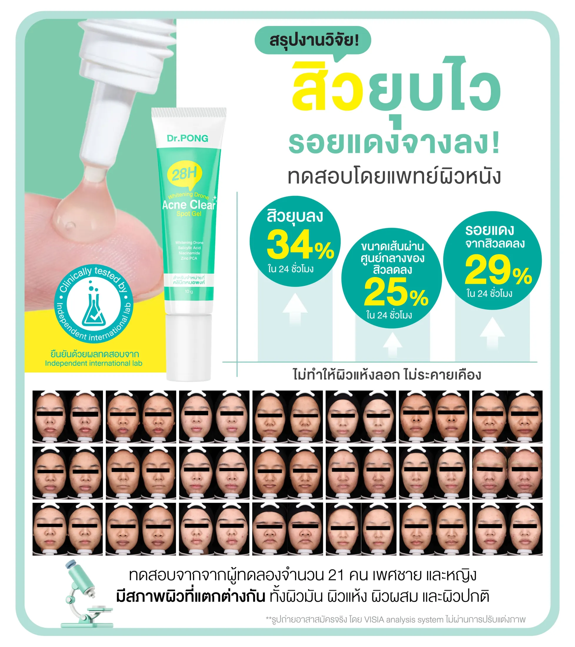 Dr.PONG 28H Whitening drone acne clear spot gel เจลแต้มสิว Niacinamide ZincPCA BHA