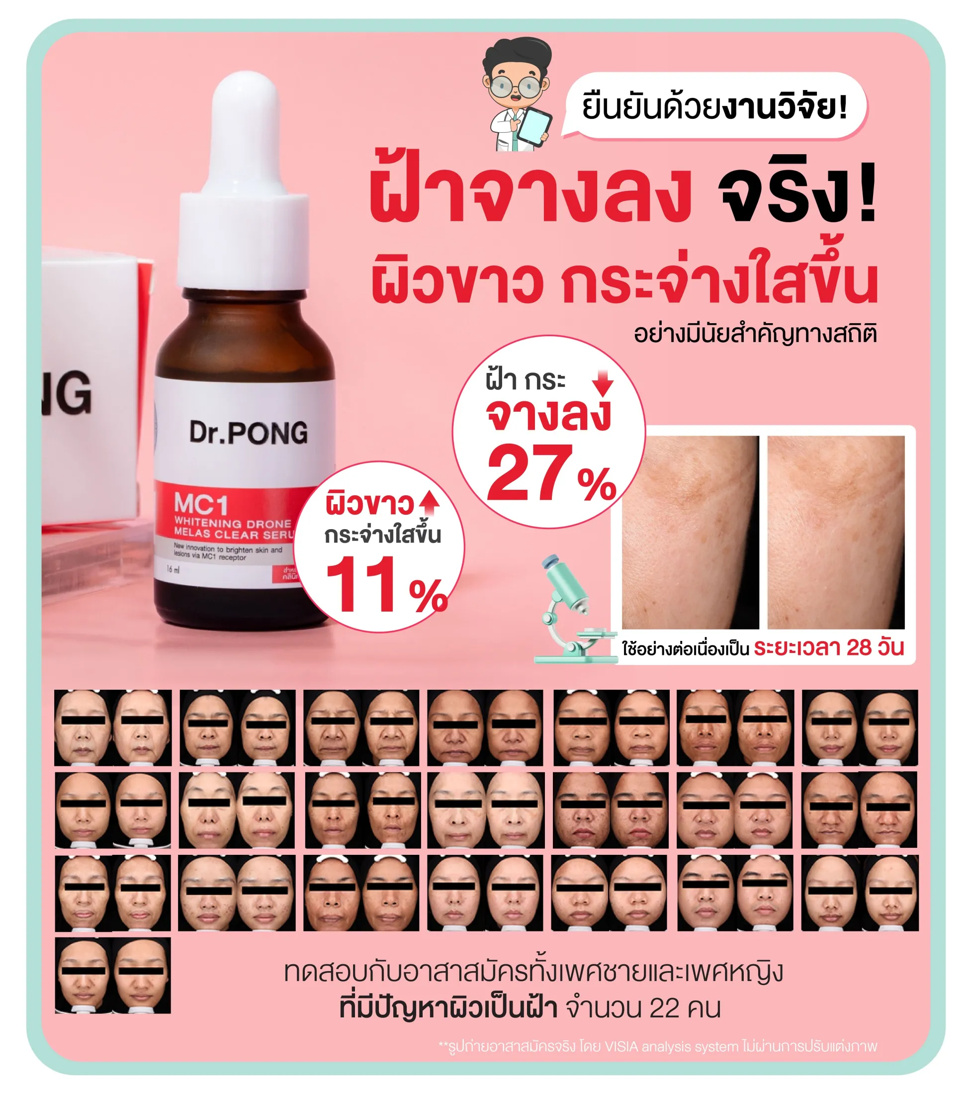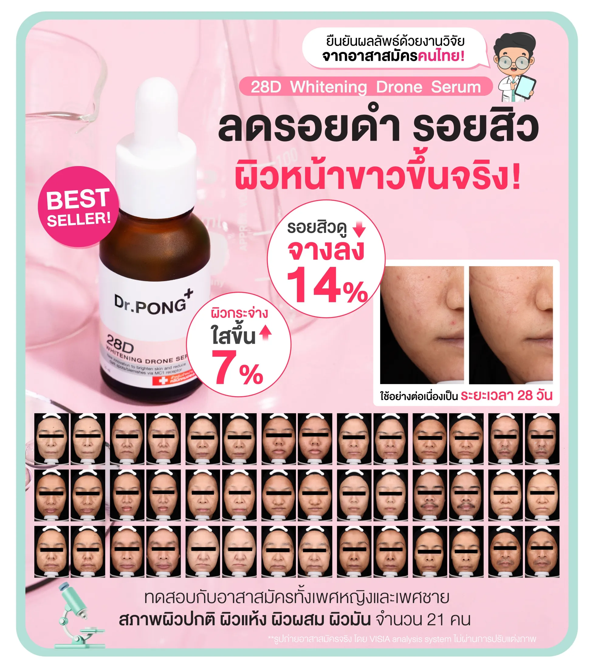 [ขวดใหม่] Dr.PONG 28D WHITENING DRONE ESSENCE เอสเซนส์ผิวขาว ดอกเตอร์พงศ์ Niacinamide + Vit C +Arbutin