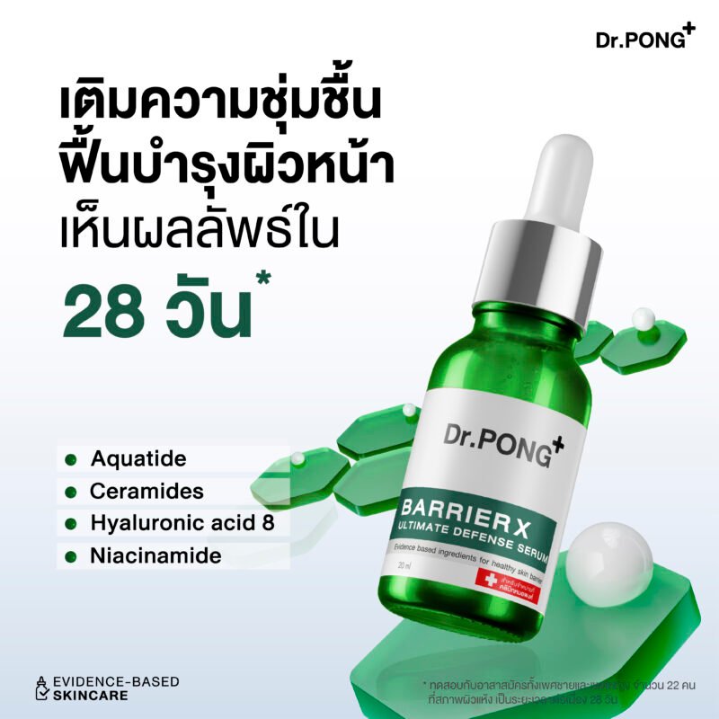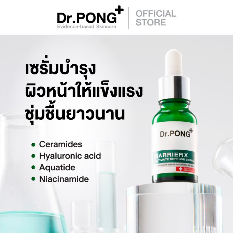 Dr.PONG BarrierX ultimate defense serum เซรั่มเสริมชั้นผิวให้แข็งแรง for healthy skin barrier – Ceramide Niacinamide Hya