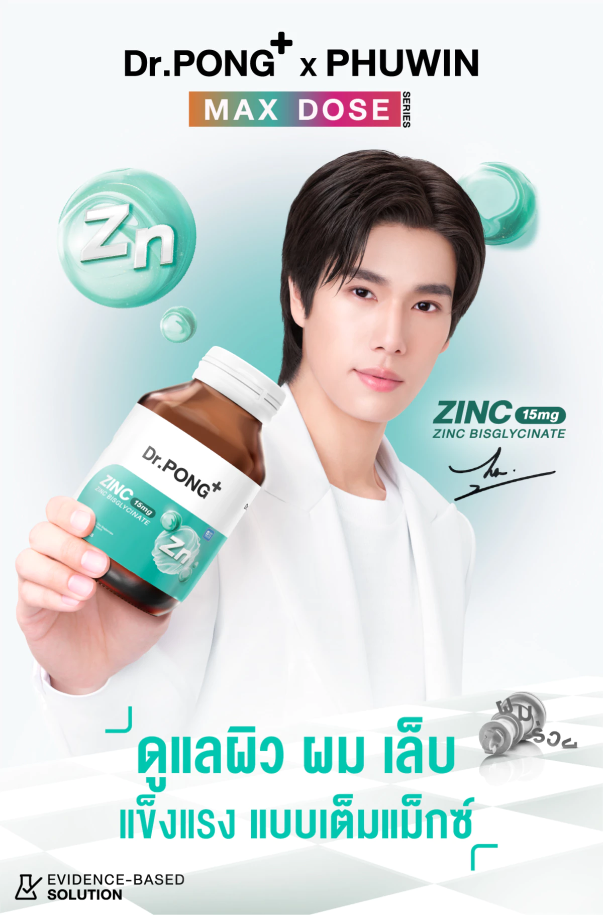 Dr.PONG Zinc Bisglycinate ซิงค์ บิสกลีซิเนต 15มก ดูดซึมดี ช่วยเสริมภูมิ คุมมัน ดูแลปัญหาสิว