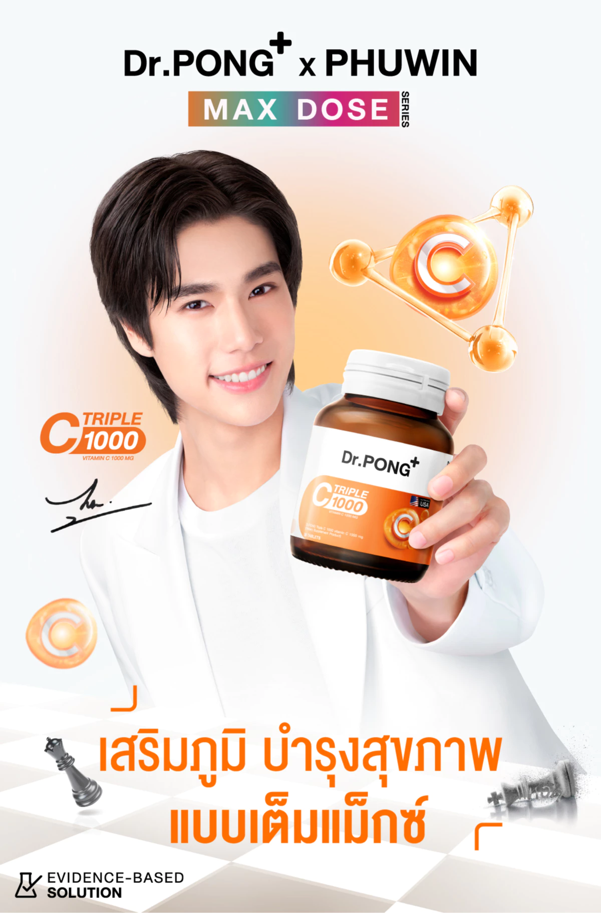Dr.PONG Triple C 1000 Vitamin C 1000mg วิตามินซี 3 ชนิด ดูดซึมได้ดีกว่า บำรุงสุขภาพโดยรวม ไม่ระคายเคืองกระเพาะอาหาร